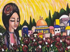 وكما عبرت بحزن عن الوطن في بعض لوحاتها واستخدمت الألوان الداكنة فيها، نراها أيضاً ترى فلسطين بألوان ٍزاهية ومبهجة تزين جبالها وبيوتها وبساتينها حتى في أشد الأوقات صعوبة وكأنها ترسم فلسطين التي تتمناها وتحلم بها كما حكى لنا عنها أجدادنا.