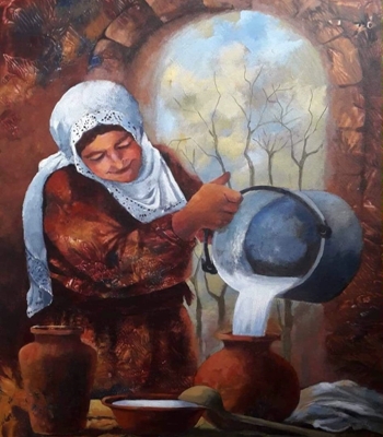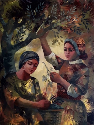 مسيرة طويلة قطعها الفنان ماهر ناجي توشحت بالحلم الفلسطيني وتفاصيله الجمالية الحالمة، والتي لا تخلو من حزن أو استدعاء لشخصيات ٍتاريخية وثقافية نفتقدها اليوم، فنرى القدس بشكل ٍخاص تتوج كثير من أعماله، بالإضافة إلى الحالة الفلكلورية الفلسطينية بغناها وتنوعها عبر الأزياء الشعبية للنساء والتي تختلف من مدينة إلى أخرى، وتختلف باختلاف المراحل العمرية والوضع الاجتماعي لكل امرأة كما تناقله التراث عبر الأجيال، فتبدو المرأة بطلةً مطلقة في أعمال ماهر ناجي وتظهر برداءٍ فلسطيني أنيق من الكبرياء والكرامة مستعرضةً تفاصيل إطلالتها وحليها وزينتها لتبدو كأميرةٍ أو ملكةٍ متوجة لا تنحني برغم الآلام والصعوبات، وكأن أعماله بمثابة تكريم ٍ لها عن صبرها ونضالها وتعكس رغبة ًفي جعلها قويةً سعيدة ًعزيزة وتنعم بالحب الذي تستحقه وافتقدته بسبب واقع الاحتلال الإسرائيلي الذي منعها من أن تعيش حياةً طبيعية ومنعها حتى من أنوثتها، فنراها عبر العديد من لوحاته في حالة زهو وسعادة وسط أجواء تراثية احتفالية في البساتين وتحت أشجار الزيتون، ونراها أحياناً تقطف الثمار وتعمل بجد في الحقل وتطعم الدجاج جنباً إلى جنب مع الفلاح الفلسطيني تأكيداً على قوة المرأة الفلسطينية وعملها منذ فجر التاريخ وتوليها مهاماً عظيمة، أو تراها تستريح بين الأزهار في حالة ربط بين المرأة والأرض والشجر والثمر كمنبع للخصوبة ورحم قادر على احتواء الإنسان والشعب وإنجاب الأفراح والثمار والربيع والفرح والأطفال، فوجدت الأم التي تحمل وليدها على ذراعها بفرحة مع حبيبها مع إطلالة على الوطن في عددٍ من لوحاته، تكريساً للأمل الذي لا يموت وتناسخ الأفراح وتوالد الفجر من رحم الظلمات.
