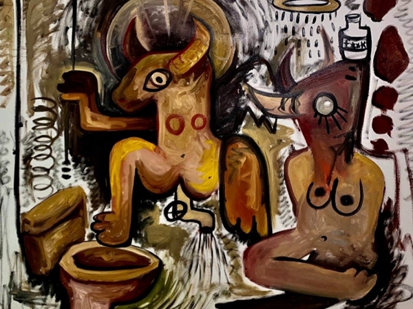 وللوهلة الأولى نلمح بصماتٍ تذكرنا بأعمال الفنان العالمي بابلو بيكاسو من حيث بعض الوجوه وطريقة الرسم في بضعة أعمال لكننا ما نلبث أن نرى خطاً مغايراً تماماً ينفذ إلى عوالم أخرى تؤكد على عمق النظرة وتميز الفكرة في أعمال الفنان الفلسطيني هاني خوري فتتحول أشد اللحظات حزناً إلى كرنفال زاخر بالرموز والاستعارات والإشارات والتي تشير في العديد منها إلى كاميرات المراقبة وتعقب البشر كما يحدث على أرض الواقع في فلسطين من قبل قوات الاحتلال الإسرائيلي ومذكراً بالرواية الشهيرة (١٩٨٤) للكاتب البريطاني الشهير جورج أورويل ومفهوم الوصاية والتتبع و(الأخ الأكبر) الذي نلاحظ حضوره في لوحاته والذي يرمز أيضاً إلى حالة الوصاية الاجتماعية التي باتت منتشرة في مجتمعاتنا العربية حيث يصدر الجميع أحكاماً على الآخرين، كما أن أزماتٍ عديدة كأزمة المياه تبدو جلية في العديد من اللوحات ويبدو الصنبور والماء والغيمة متواجدين بكثافة في عدة أماكن وأزمات كمؤشر لترابط هذه الأزمات ببعضها البعض ومصدرها الرئيسي ومنبعه السياسة والاحتلال والفكر الإقصائي للبشر وتهميش الكثير من الفئات وتصنيفهم حسب طائفتهم أو لونهم أو عرقهم أو وضعهم المادي والاجتماعي والذي يشار إليه بقدر من تهكمٍ منبعه الغضب في وجود المرحاض في عددٍ من اللوحات والتي تمت عنونتها ب (ثور لا يثور) و (رؤية لا سامية) كنوع من عبثية الشعارات والأفكار والعناوين الجاهزة والمكررة والمستهلكة والمعدة سلفاً حول الأزمات الوطنية والإنسانية والتي لم تقدم أي حل يخفف من معاناة الناس.