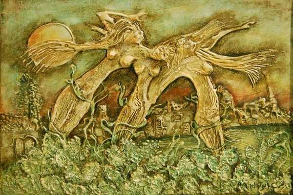 وعن تقنيته في التشكيل يقول: “يطيب لي أن أستخدم تقنية تماثل تقنية “الريليف” وهي النحت النافر على اللوحة، وقد كونت توليفة خاصة بي صنعتها من عدة مواد مستخدما اللون البني المعتم والفاهي، أمدّه على اللوحة فيعطي شعوراً بالقدم التاريخي والعتاقة، وفق أسلوب تعبيري يكاد يخلو من الكتل غير المقروءة إلا فيما أتقصد وجوده من خلال الرمز”
