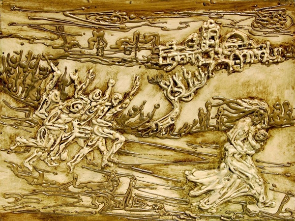 لم يبق شيء يسد الرمق، توقف الضوء ونخر البرد العظام، لا وطن يحتوينا، كل الطيور مهاجرة، حملتُ أسمالي المهترئة ومشيت.. مشيت مكرها وأرتال من الجياع تتبعني.. مهاجرون نحن. ولكن إلى أين؟”