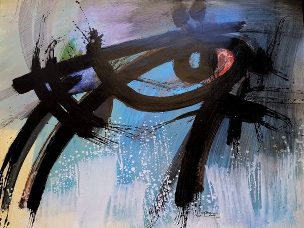 كما أن هناك تبايناً بين اللوحات من حيث أنماطها ودرجات الضوء والألوان فيها، بحيث تأخذك لأكثر من قراءة وأكثر من احساس عبر خلق حالات ٍ متناغمة أو متنافرة أحياناً بين مركز اللوحة والألوان المحيطة بها، مع اختلافها واختلاف الحرف أو الرمز أو الشكل ككل ونلحظ ذلك عند المقارنة بين اللوحات، فإما أن تبرزها عبر اضافاتٍ جريئة تجعلها في حالة توهج، أو تضفي عليها مسحةً ضبابية أنيقة تشيع حالةً من التأمل والرصانة على هذه الأعمال، وتخلق حالة ً من التنوع فيما بينهم جميعاً وكلٌ بحسب ذوقه.