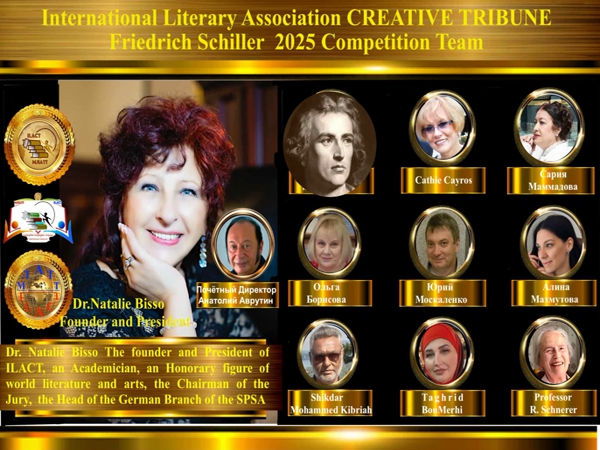 نظمت الرابطة الأدبية الدولية «كرييتف تريبيون – CrcatiwTribunc» في ألمانيا، وبإشراف الرئيس المنظم الدكتورة ناتالي بيسو، مسابقة «فريدريك شيلر» الأدبية الدولية، وشارك فيها هذا العام 2025 كتاب وشعراء من 40 دولة حول العالم، كما تم تخصيص ترشيحات مخصصة للأطفال والطلاب.